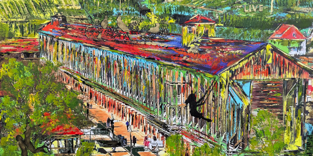 Eineinviertel Meter wiederum misst die Diagonale des poppig-bunten Gradierbau-Gemäldes von Mechthilde Gairing, das die Dürkheimer Künstlerin mit eigener Galerie in der Römerstraße („Pfalz-Pop-Art“) als Druck mit eng limitierter Auflage dem Förderverein für eine Verlosungsaktion gespendet hat. Seit der 1000-Jahr-Feier auf der Limburg Mitte Mai haben die Saliner Lose dafür verkauft, die letzten werden nun während des Salinenfests für jeweils 5 Euro angeboten. Am Sonntagnachmittag wird dann auf offener Bühne das Gewinnlos gezogen.